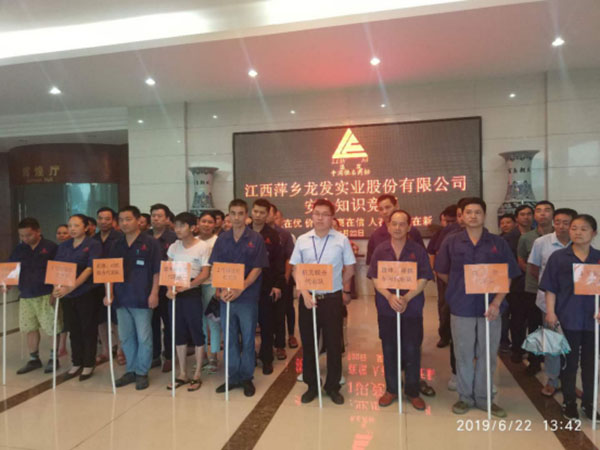 努力開(kāi)拓龍發(fā)實(shí)業(yè)安全生產(chǎn)工作新篇章——龍發(fā)實(shí)業(yè)2019年安全知識(shí)競(jìng)賽活動(dòng)圓滿(mǎn)成功2019年6月22日,江西萍鄉(xiāng)龍發(fā)實(shí)業(yè)股份有限公司安全生產(chǎn)知識(shí)競(jìng)賽順利舉行,來(lái)自公司的10個(gè)代表隊(duì)共50名選手經(jīng)過(guò)激烈角逐參加了此次決賽,本次安全生產(chǎn)知識(shí)競(jìng)賽是龍發(fā)實(shí)業(yè)舉辦的安全生產(chǎn)知識(shí)競(jìng)賽,公司各級(jí)...