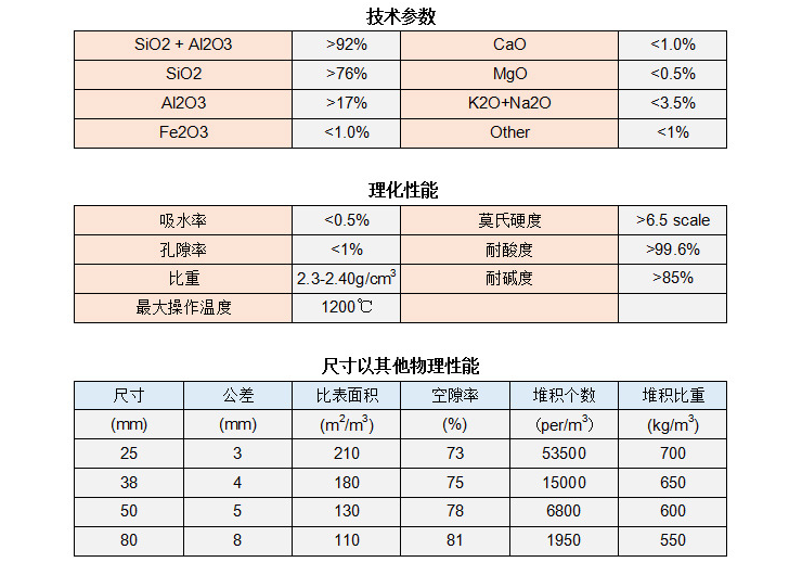 陶瓷鮑爾環(huán)具有優(yōu)異的耐酸耐熱性能,能耐除氫氟酸以外的各種無機酸、有機酸及有機溶劑腐蝕,可在各種高溫場合使用,應用范圍十分廣泛,可用于化工、冶金、煤氣、環(huán)保等行業(yè)的干燥塔、吸收塔、冷卻塔、洗滌塔、再生塔等。