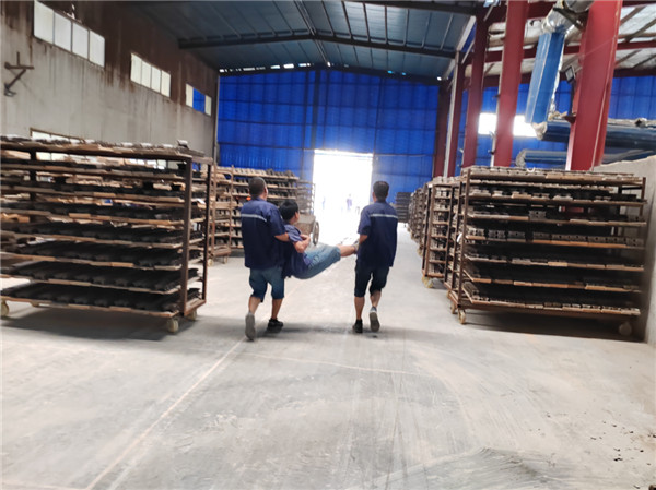 模擬1#推板窯車間,工作人員在窯爐(有限空間)內(nèi)檢修窯爐時,燃?xì)獯嬖谛孤?,操作人員中毒的應(yīng)急處理。演練中,現(xiàn)場人員做好事故報告,掌握救援要點,做好現(xiàn)場控制,疏散有關(guān)人員等,掌握了有限公司空間作業(yè)的應(yīng)急救援能力等。