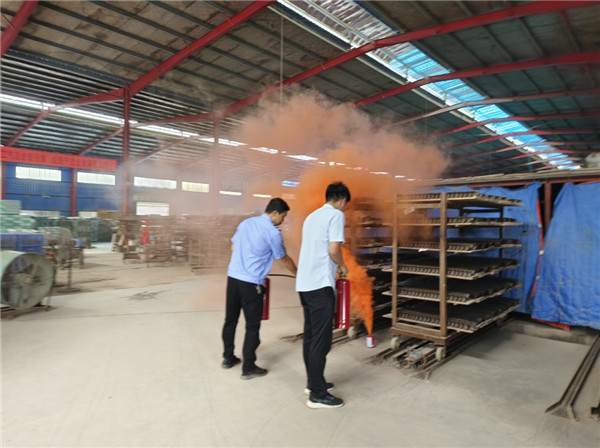 本次演練以模擬公司填料成型車間某處因電線老化,引發(fā)火情,現(xiàn)場濃煙彌漫,生產(chǎn)小組組織人員組織緊急疏散逃生和應(yīng)急處理火情。義務(wù)隊組織義務(wù)消防員,使用干粉滅火器,撲滅初期火情。