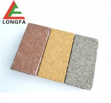 4 、膠粘石子磚:由于使用有機(jī)材料粘合而成,風(fēng)吹日曬,二年左右會出現(xiàn)老化變性,造成材料易碎、易斷等問題。
