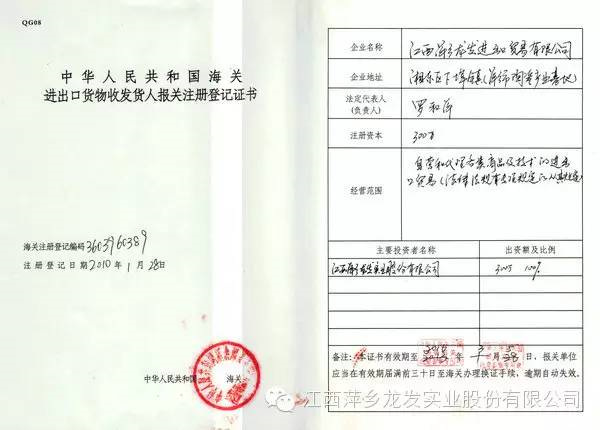 2013年檢進(jìn)出口公司進(jìn)出口貨物收發(fā)貨人報(bào)關(guān)注冊(cè)登記證書(shū)