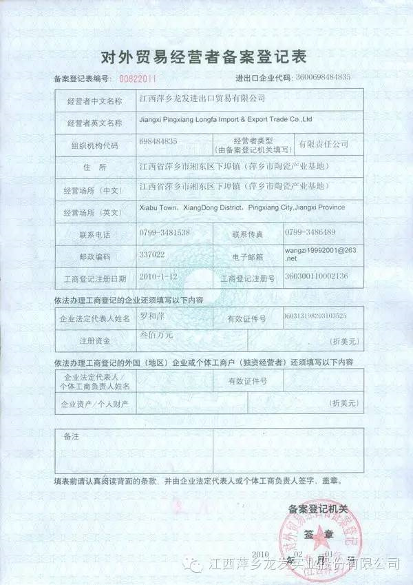 對(duì)外貿(mào)易經(jīng)營(yíng)者備案登記表